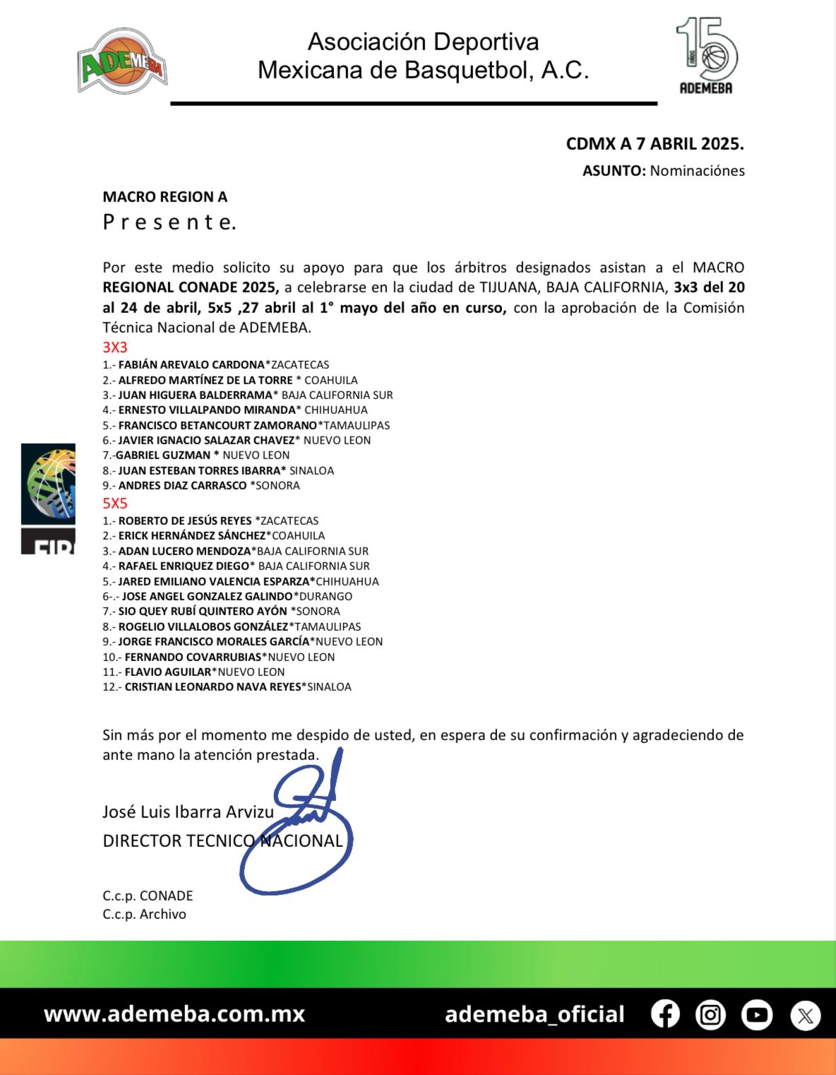 Desde Ademeba Nuevo León queremos extender una felicitación muy especial a nuestros árbitros por su destacada participación y compromiso en el próximo Macroregional que se llevará a cabo en Baja California.
